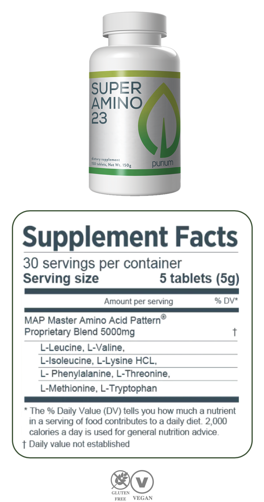 These 100% pre-digested vegan protein tablets can help build lean muscle and burn fat. A core Purium product, Super Amino 23 is featured in the Physician`s Desk Reference for rapidly absorbing protein into the bloodstream in 23 minutes.